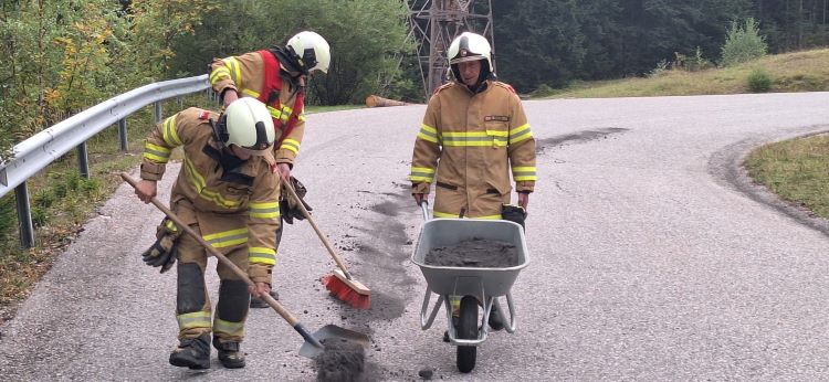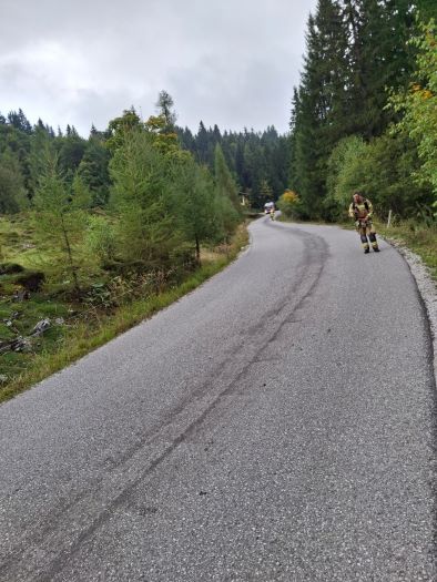 Am 27.09.2025 wurde die FF Strobl um 17:18 Uhr auf die Postalmstraße wegen einer Ölspur alarmiert. Beim Eintreffen stellte sich heraus, dass ein Betriebsmittel auf der Straße ab Kehre 8 Richtung Abtenau ausgetreten war. Die Kameraden vom LZ Volgau hatten bereits mit dem Reinigen der Straße ab dem Parkplatz Zentralkasse Richtung Abtenau gestartet.