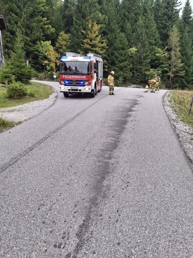 Am 27.09.2025 wurde die FF Strobl um 17:18 Uhr auf die Postalmstraße wegen einer Ölspur alarmiert. Beim Eintreffen stellte sich heraus, dass ein Betriebsmittel auf der Straße ab Kehre 8 Richtung Abtenau ausgetreten war. Die Kameraden vom LZ Volgau hatten bereits mit dem Reinigen der Straße ab dem Parkplatz Zentralkasse Richtung Abtenau gestartet.